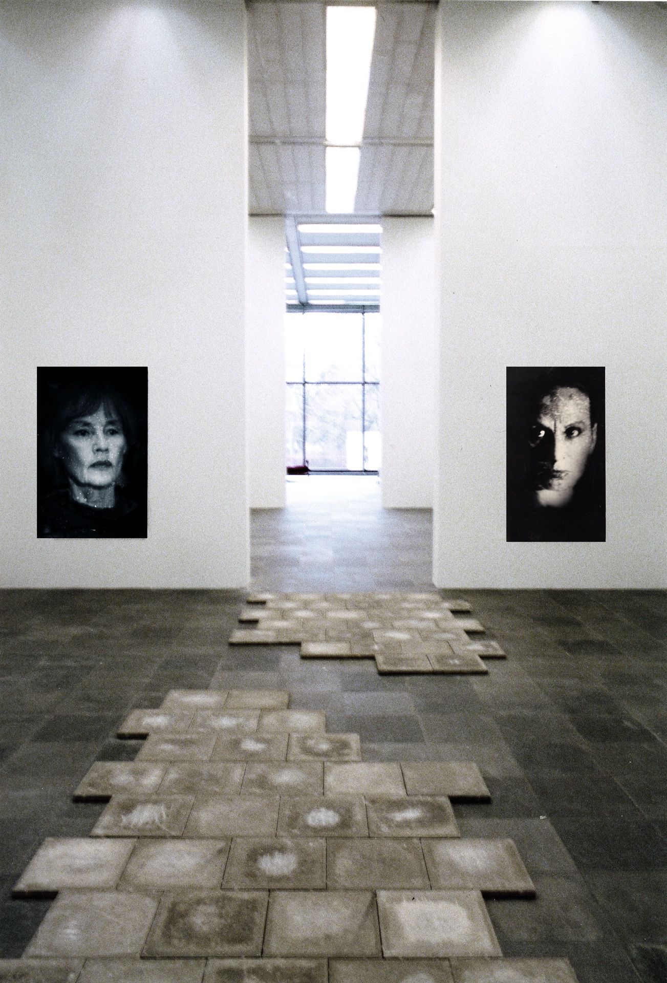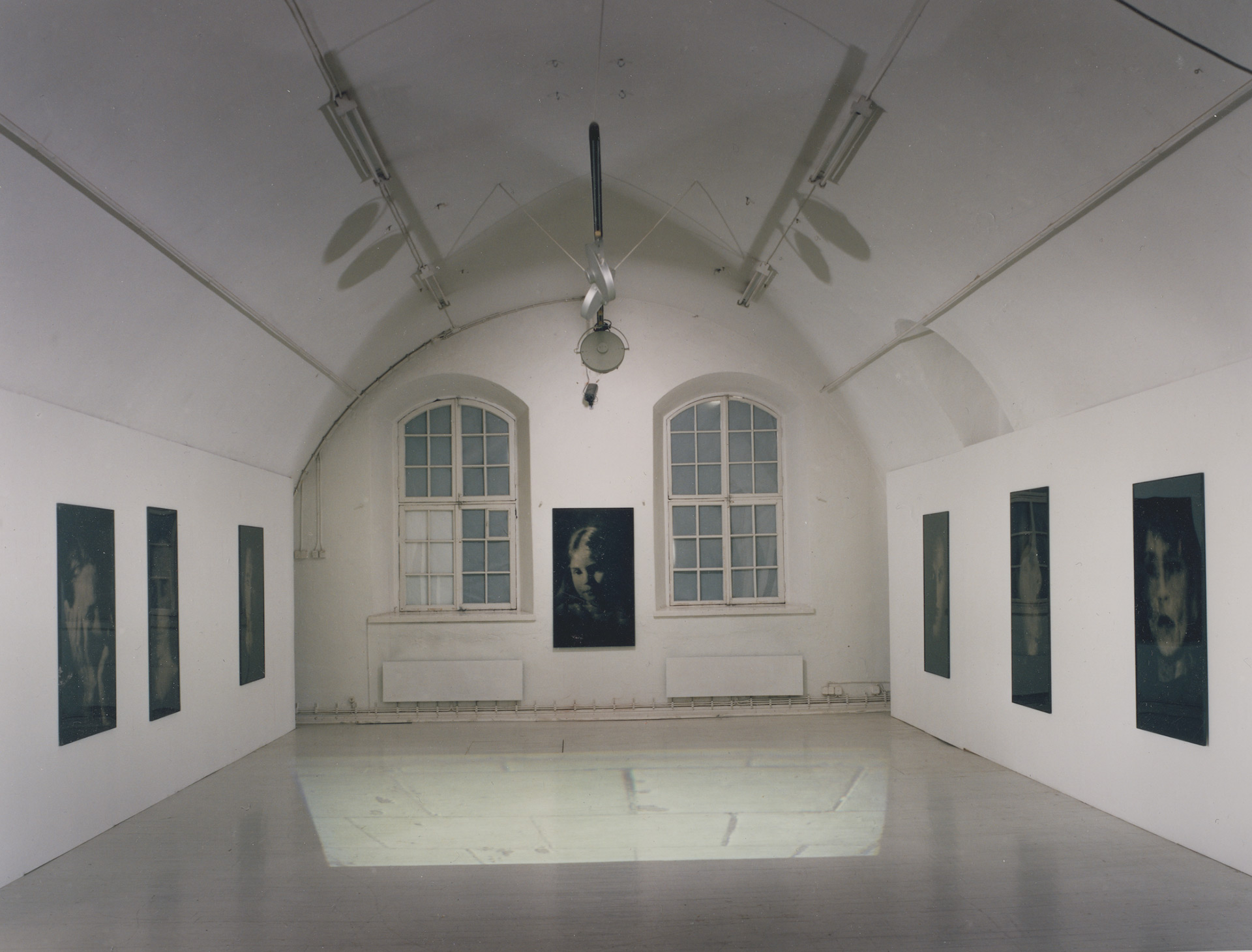 Mirror images as shadow images, after images, ghost images, reflected duplications, double images as different identity conditions. I started working with the portraits after an experience while visiting a palace in Venice, famous for its ghoststories: “Entering a dark room the only source of light comes in through the chinks in the closed blinds. There is a strange blurred image on the wall, like an old map. A light is reflected on its surface. The image is moving. For a second it feels like someone is looking at me and then, like me looking at somebody else. It is a mirror and upon approaching it I realise that the reflected image is my face; fragmented, deformed, aged. The surface is like a membrane, a new skin between me and a ghostly image of myself emerging from infinity.”
